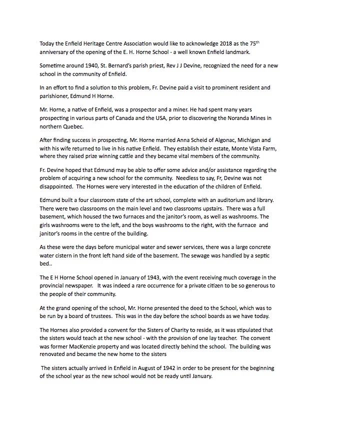 E H Horne School 1943-2018